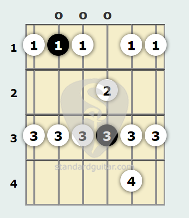 - on the third string play an F on the tenth fret using your first finger and a G on the twelfth fret using your third finger